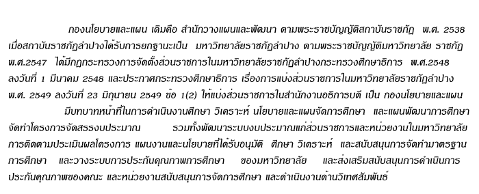 กองวิเคราะห์นโยบายและแผน สำนักงานอธิการบดี มหาวิทยาลัยราชภัฏลำปาง