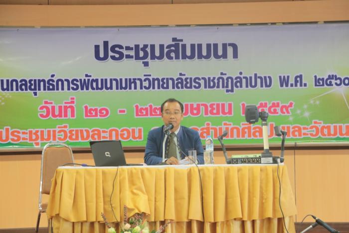 ในวันที่ 21 มกราคม 2559 กองนโยบายและแผนจัดประชุมสัมมนาจัดทำแผนกลยุทธ์การพัฒนา มหาวิทยาลัยราชภักลำปาง ปี พ.ศ.2560-2564 วันที่ 21-22 มกราคม 2559 ณ ห้องประชุมเวียงละคอน สำนักศิลปะและวัฒนธรรม มหาวิทยาลัยราชภัฏลำปาง โดยในภาคเช้า ดร.สุชาติ เมืองแก้ว นายกสภามหาวิทยาลัยราชภัฏลำปาง บรรยาย เรื่อง "มองอนาคตอุดมศึกษาไทย สู่การจัดทำแผนกลยุทธ์มหาวิทยาลัยราชภัฏลำปาง" รศ.ดร สมเกียรติ สายธนู นำเสนอ ร่างทิศทางการพัฒนามหาวิทยาลัยราชภัฏลำปาง และในภาคบ่าย ได้มีการแบ่งกลุ่มระดมความคิดเห็นการปรับทิศทาง เป้าหมายการพัฒนามหาวิทยาลัยฯ โดยมี ดร.ช่วงโชติ พันธุเวช เป็นวิทยากร